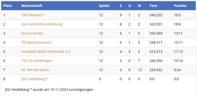 Abschlusstabelle B-JUGEND Saison 2023/2024