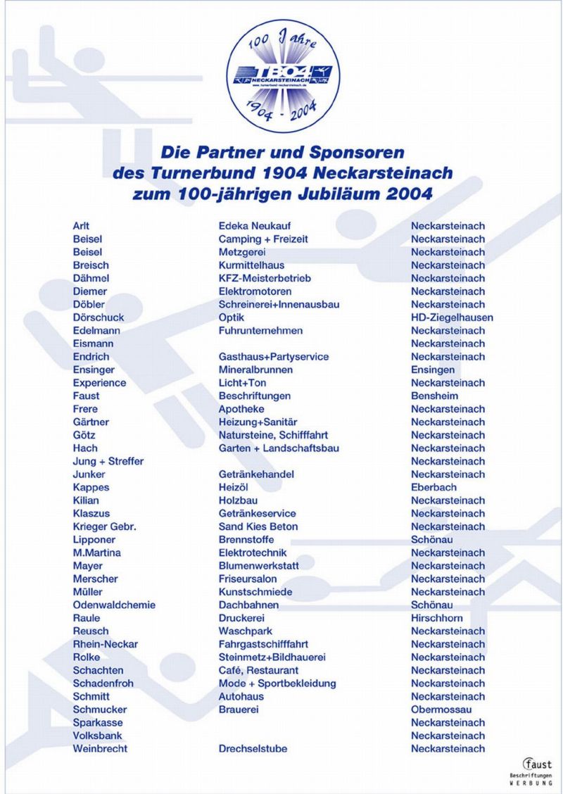 Die Partner und Sponsoren des TB04 zum 100-jährigen Jubiläum 2004 [Partner & Sponsoren-2004]