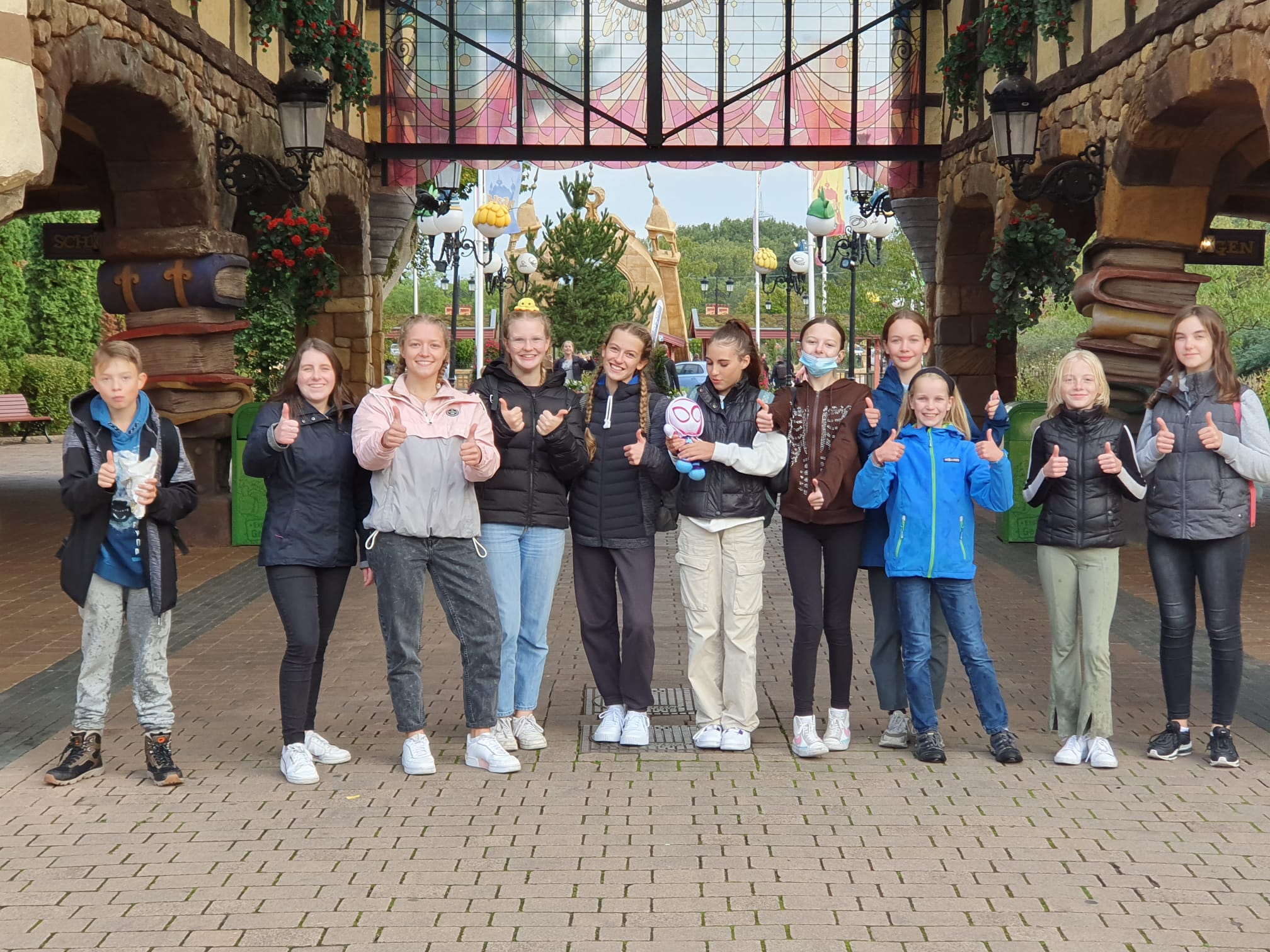 Bis auf kurz anhaltenden Nieselregen hatten wir großartiges Wetter! Das meiste Wasser bekamen wir bei den Wasserattraktionen des Parkes ab. Durch die Sonne sind wir jedoch alle wieder trocken in den Bus zur Heimfahrt gestiegen. Der Park war glücklicherweise nur mäßig besucht und wir hatten kaum Wartezeiten von mehr als 5 Minuten. Die Jugendlichen haben den Park eigenständig in Kleingruppen erkundet. Mehrmals haben wir uns verabredet und sind uns auch oft spontan über den Weg gelaufen.