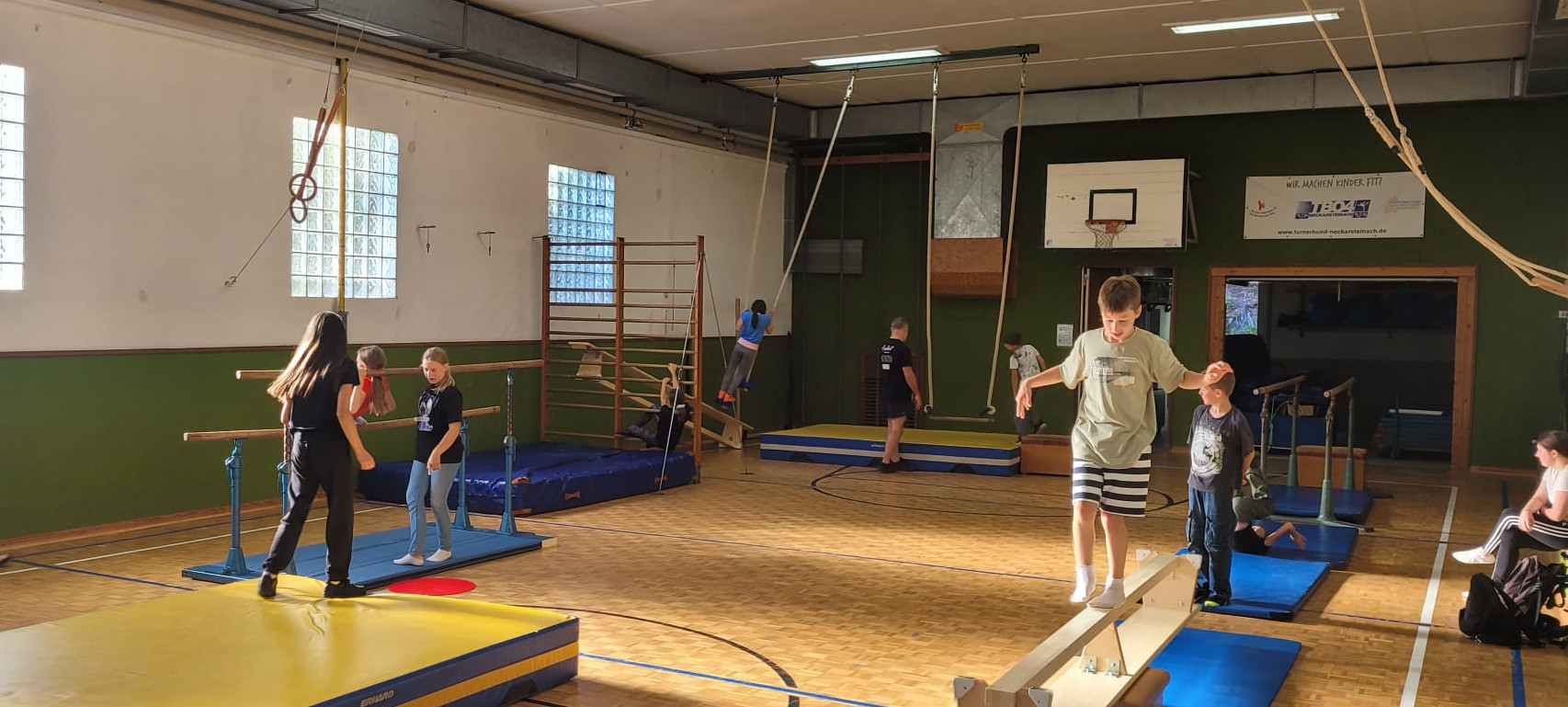 10 Kinder haben sich am 06.09.2024 in der Stangenberghalle getroffen. Wir haben bereits ein Parkour aufgebaut und starteten mit ein paar Kennenlernspiele. Dannach folgte eine Stärkung, es gab Pizza für alle.